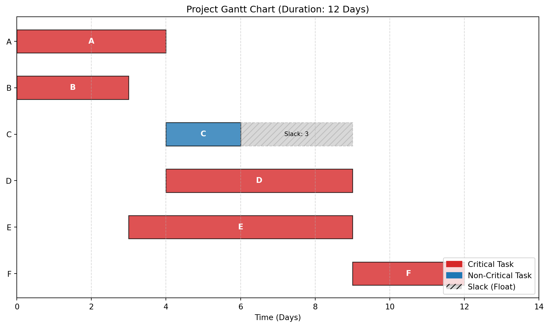 Do you see activity F? It cannot start until both D and E are finished. This is where the math gets interesting.